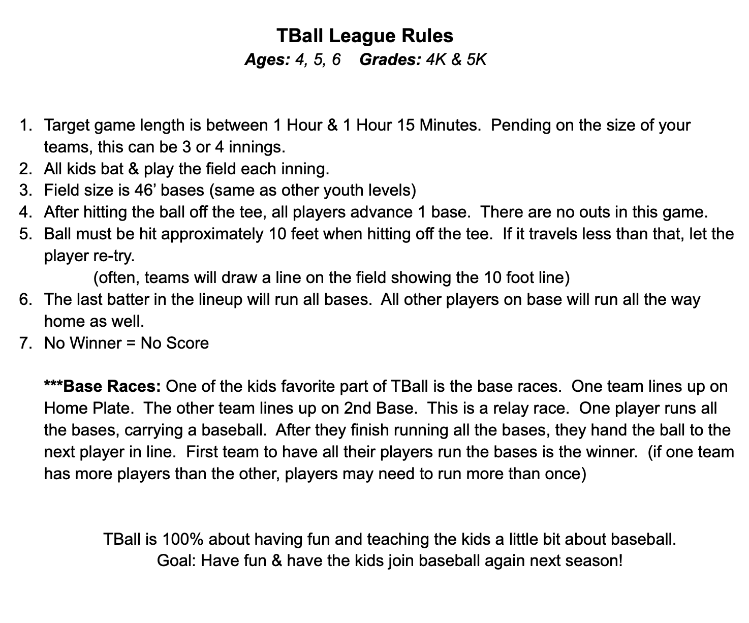 T-Ball League Rules