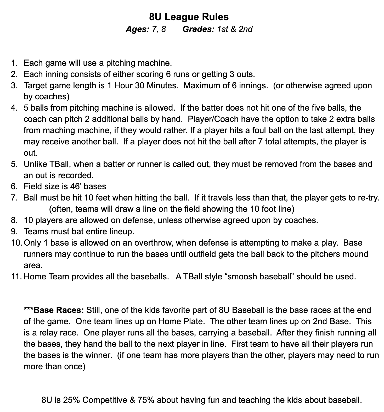 8U League Rules
